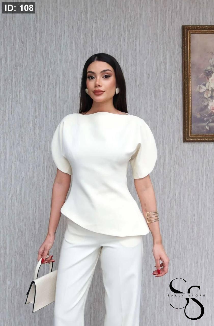 طقم قصّة زارا لون ابيضّ فقط بلوزة وبنطلون