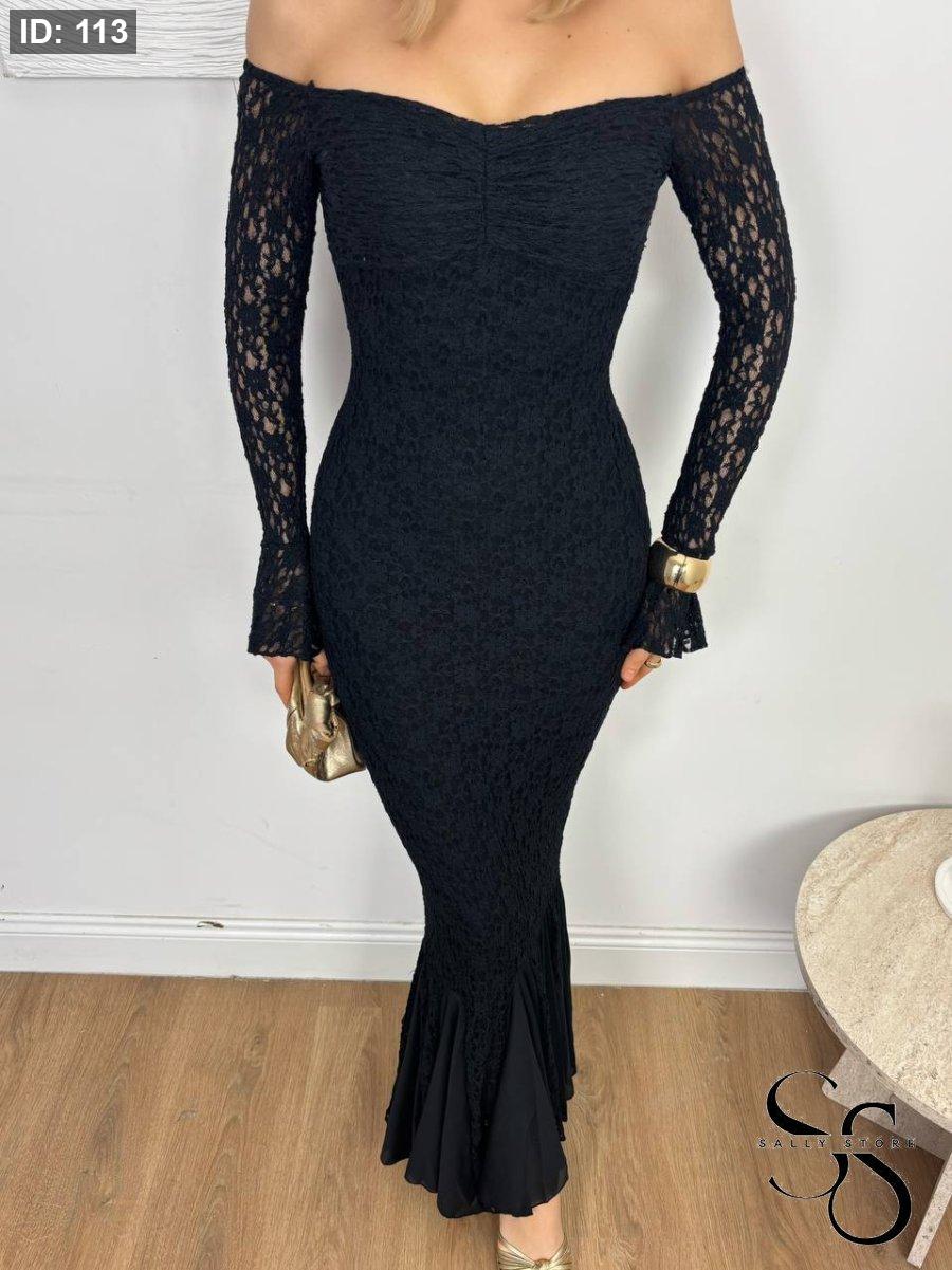 فستان أسود دانتيل كُم أوف شولدر
