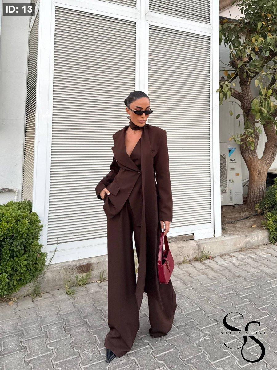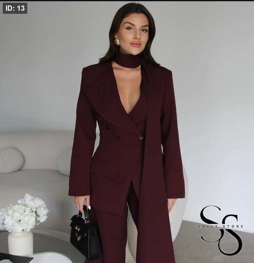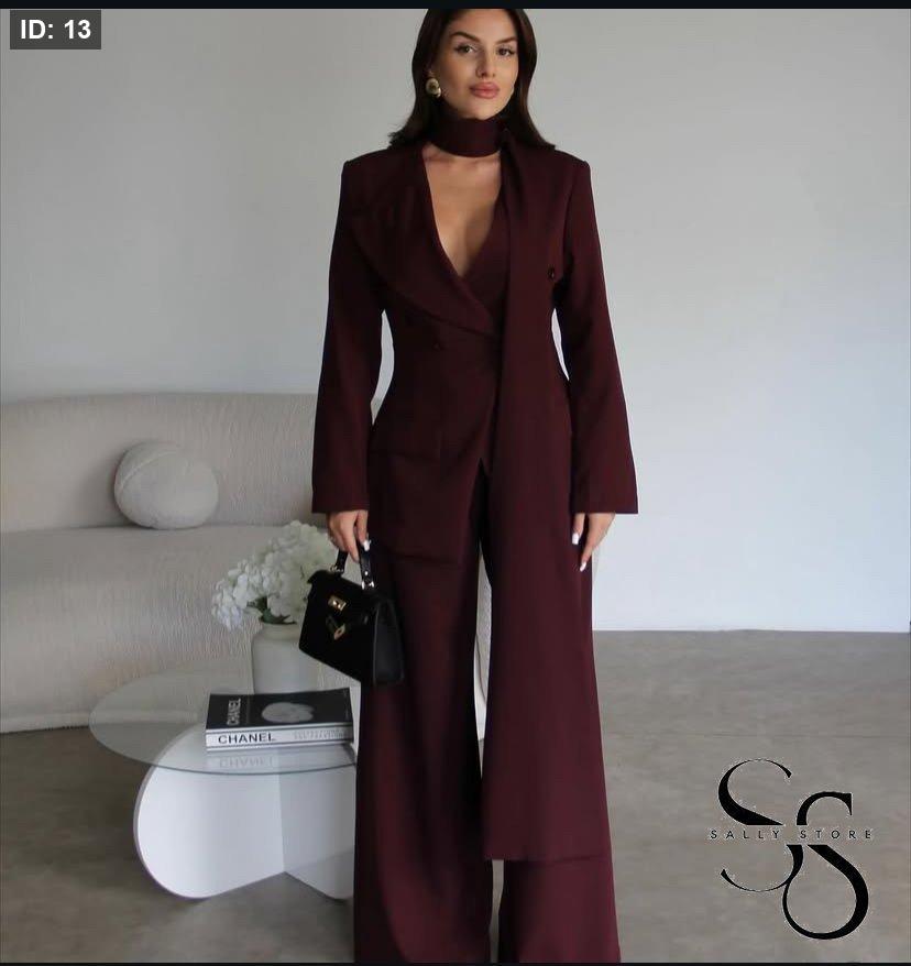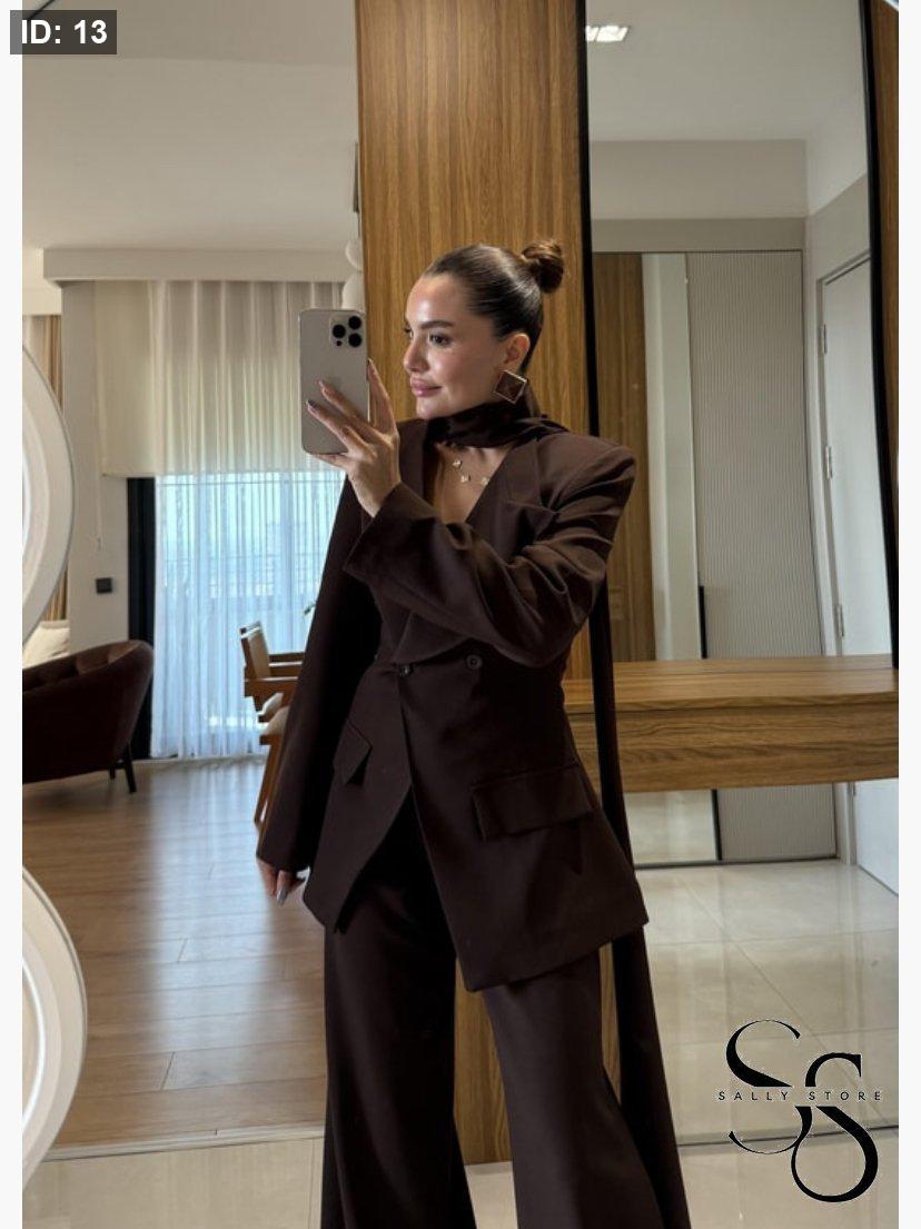 الطقم 3 قطع ( جاكيت ، بنطلون وشال )