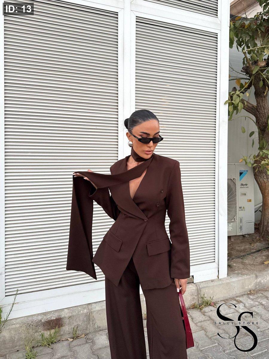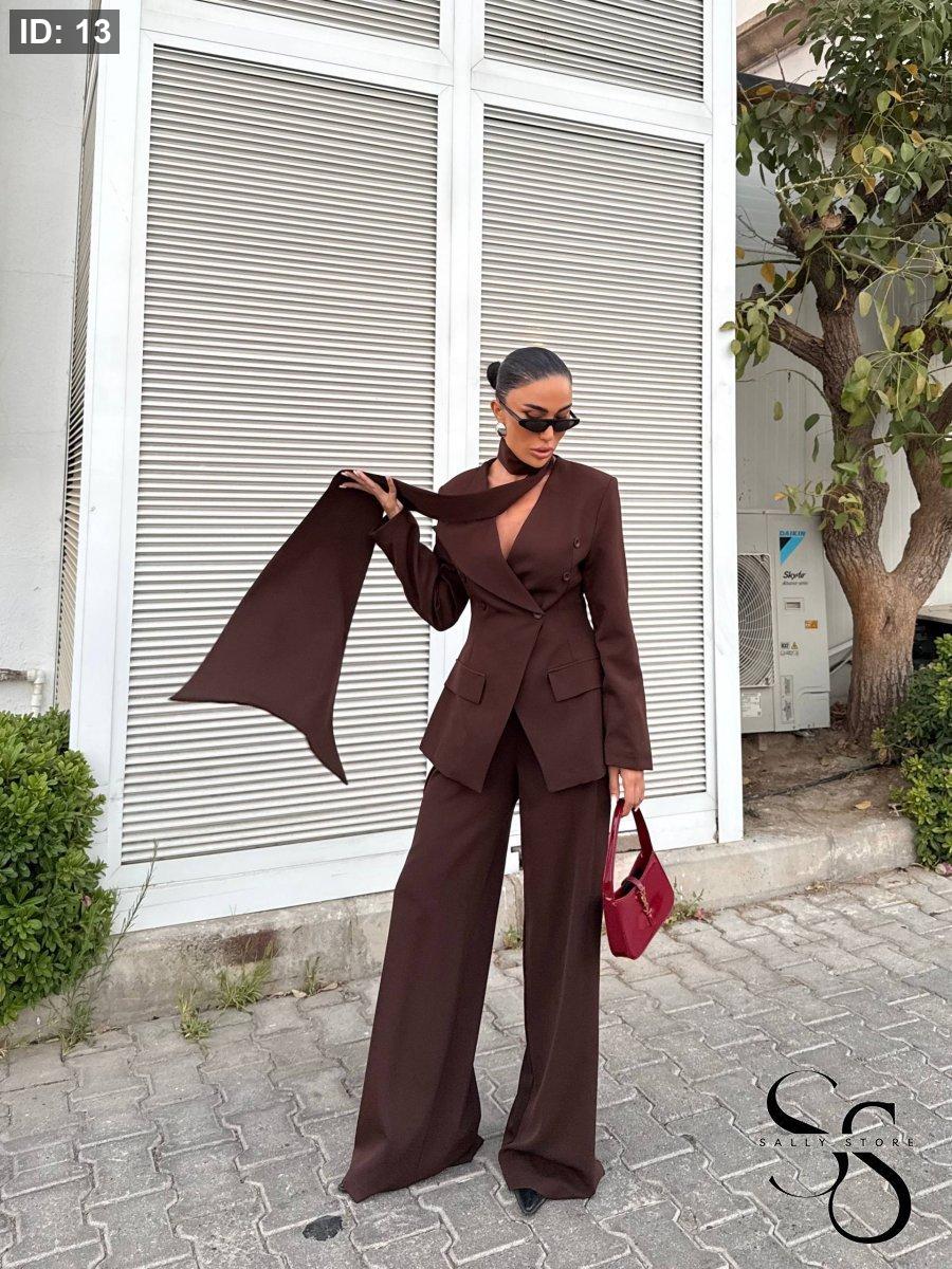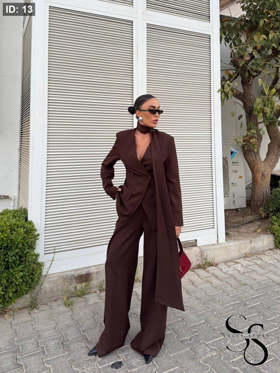 الطقم 3 قطع ( جاكيت ، بنطلون وشال )