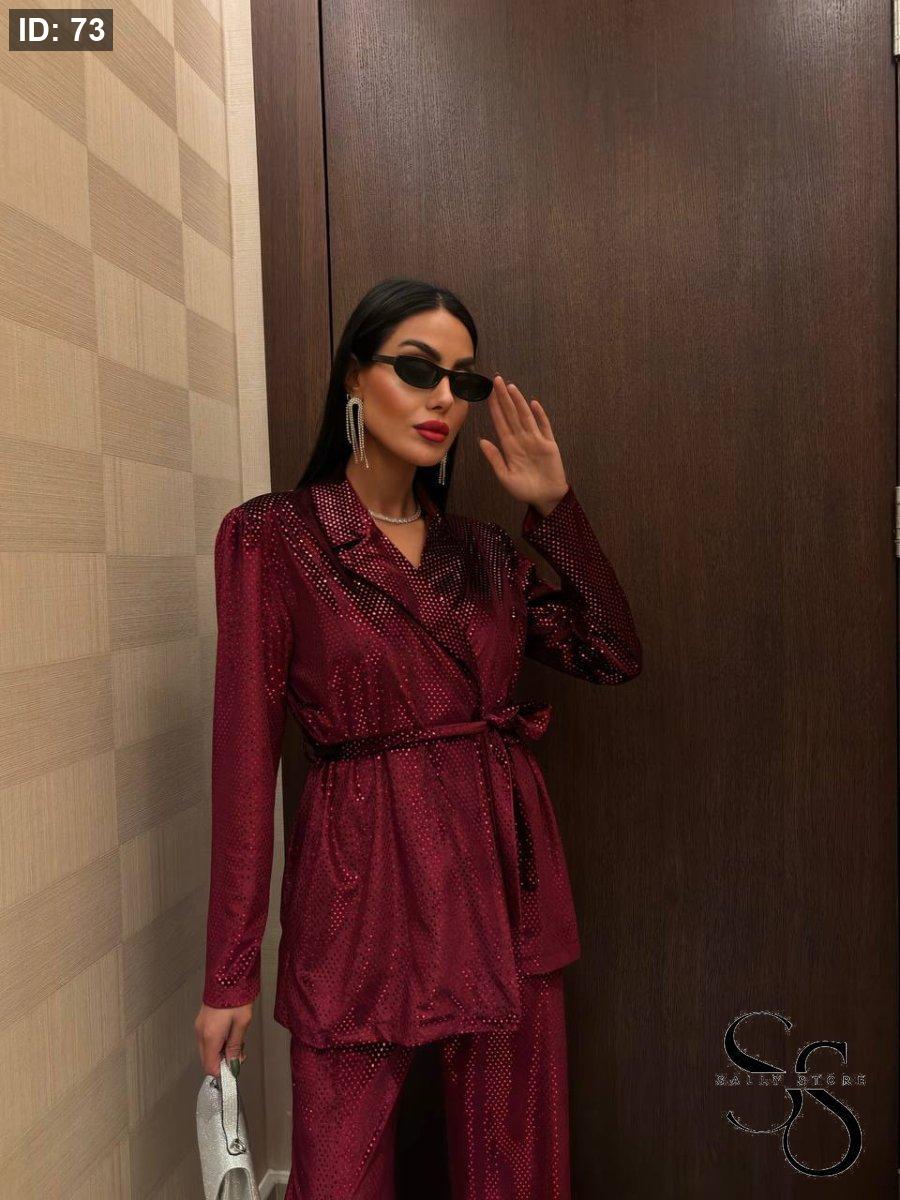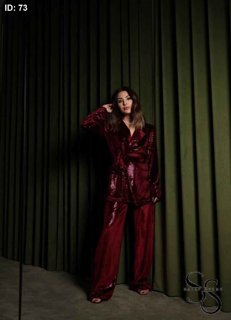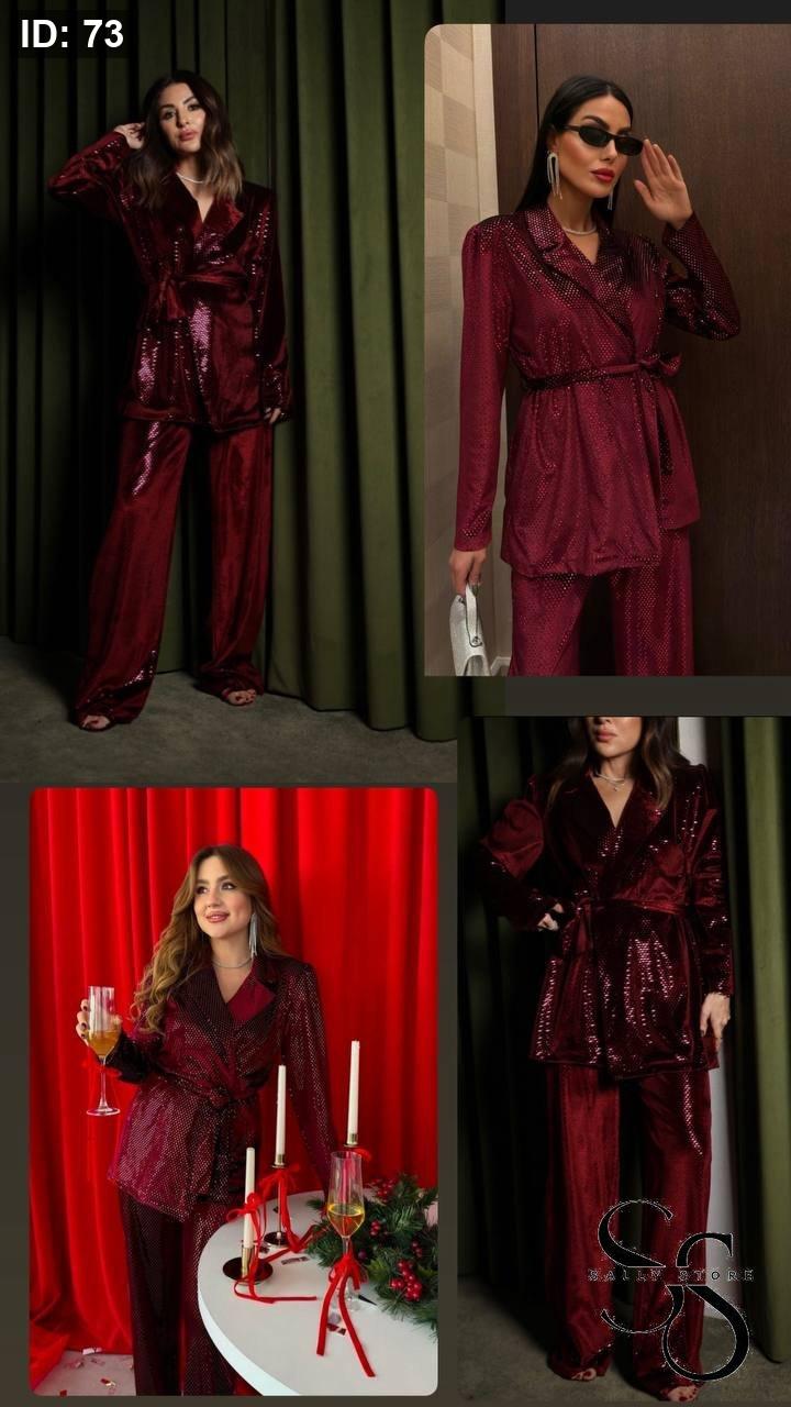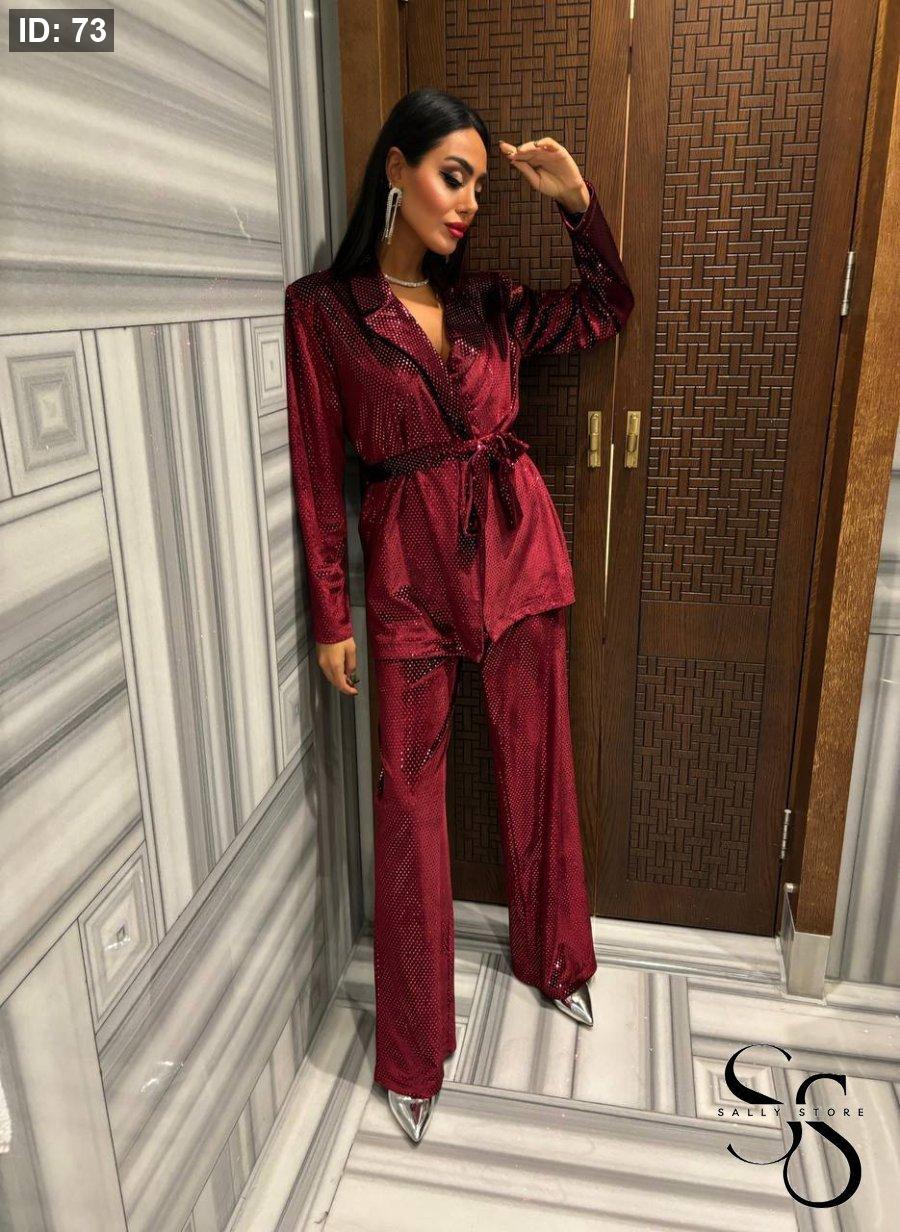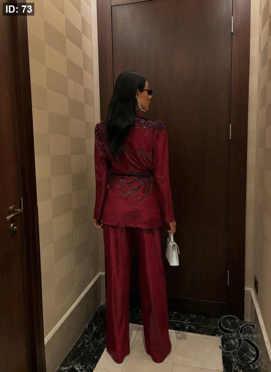 طقم زارا مخمل مميّز جاكيت وبنطلون عليه زركون