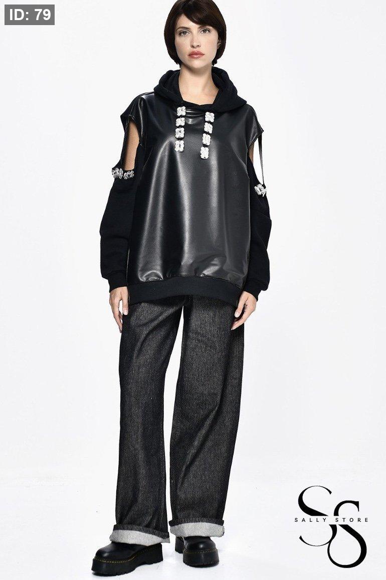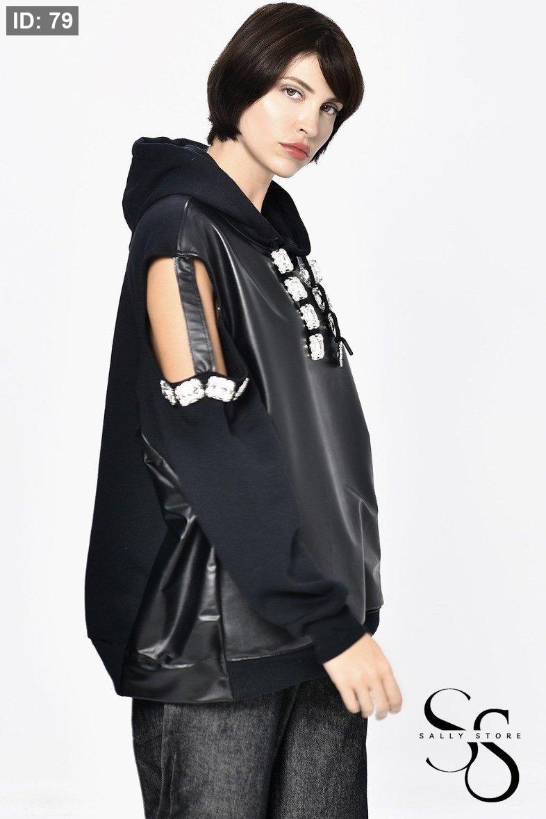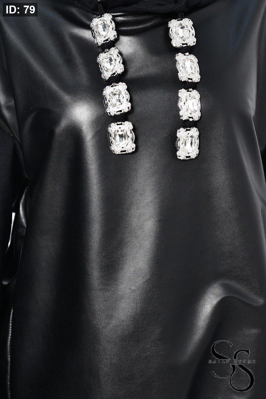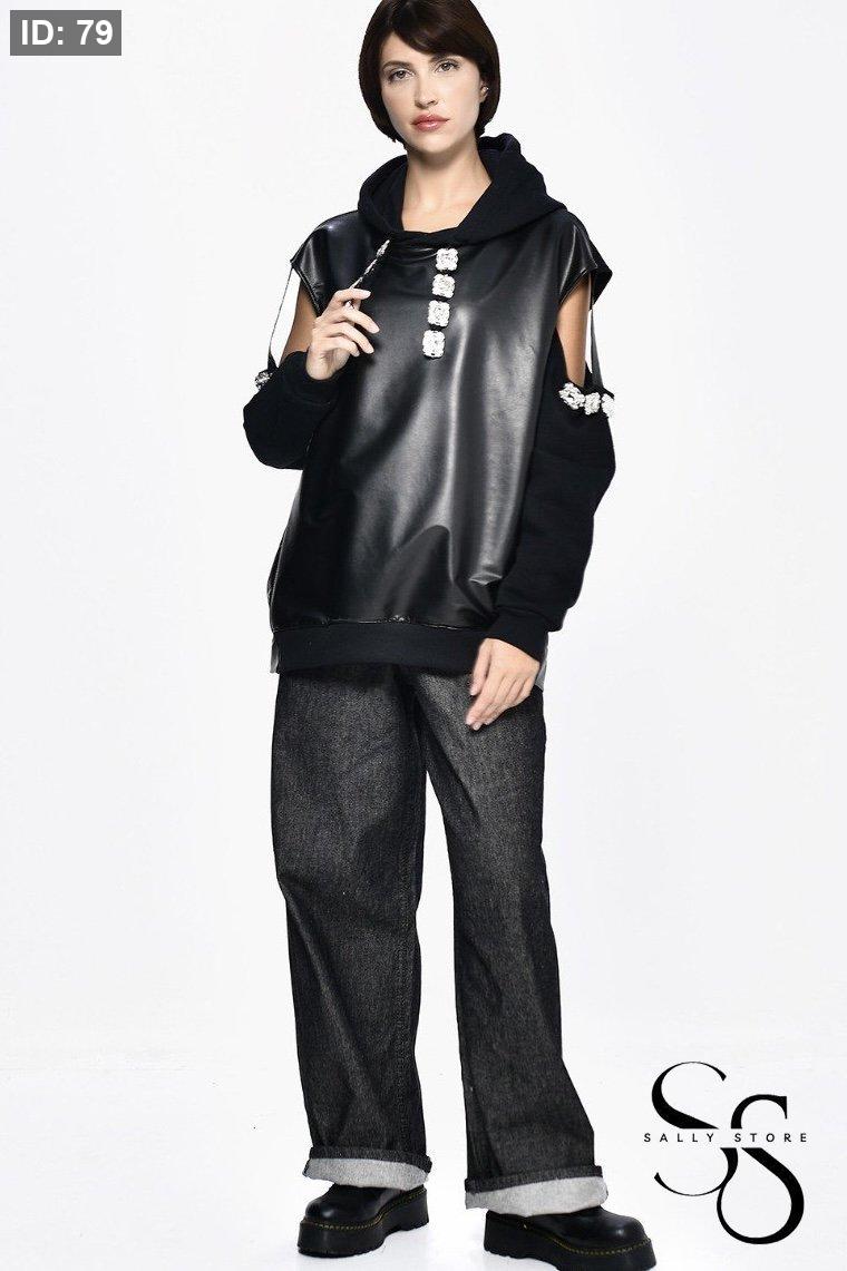 بلوزة مميّزه عليها ستراس ، من قدام جلد ، من ورا فوتر ناعم والايدين فوتر ناعم