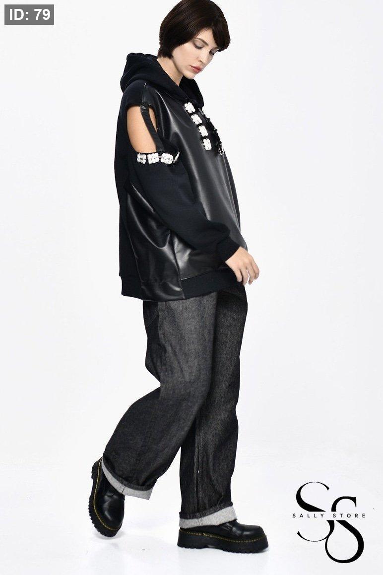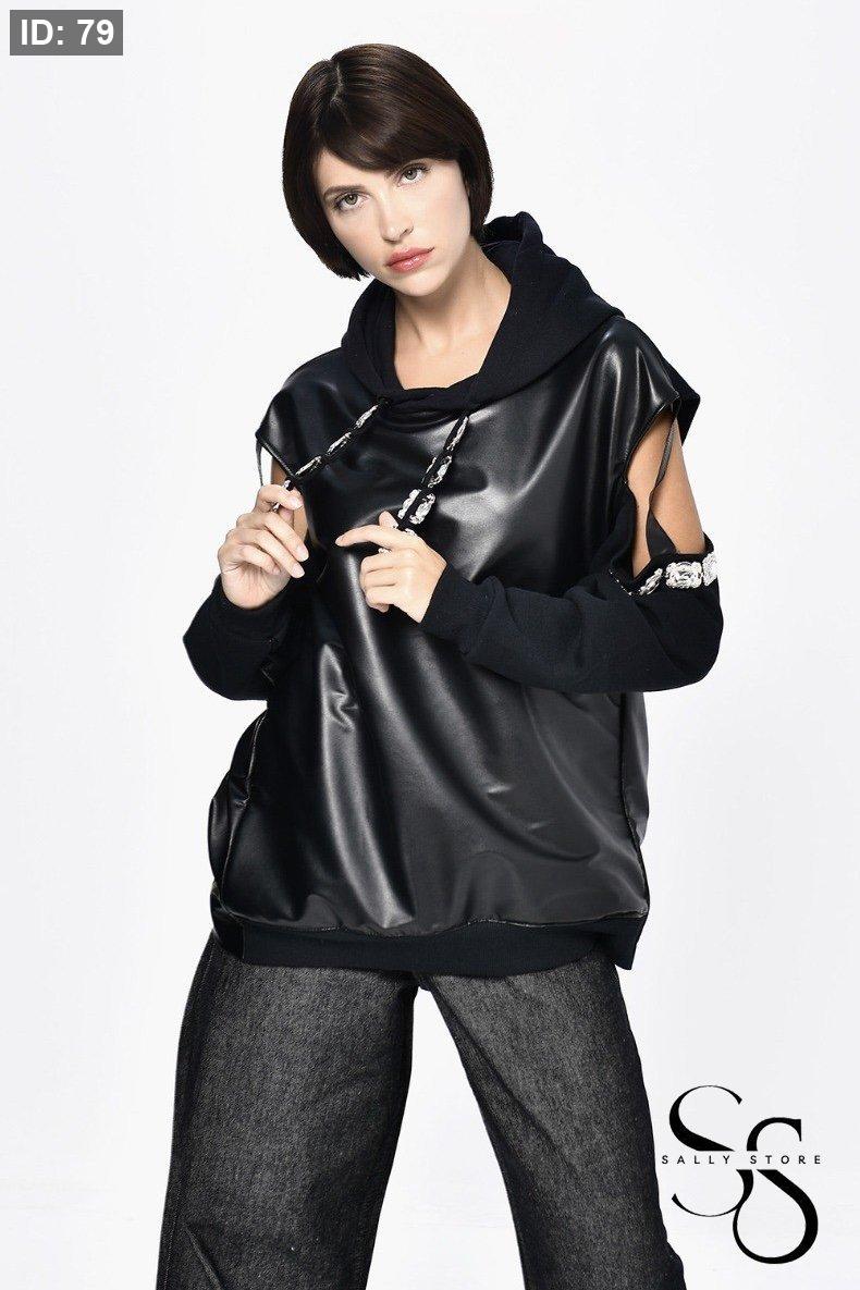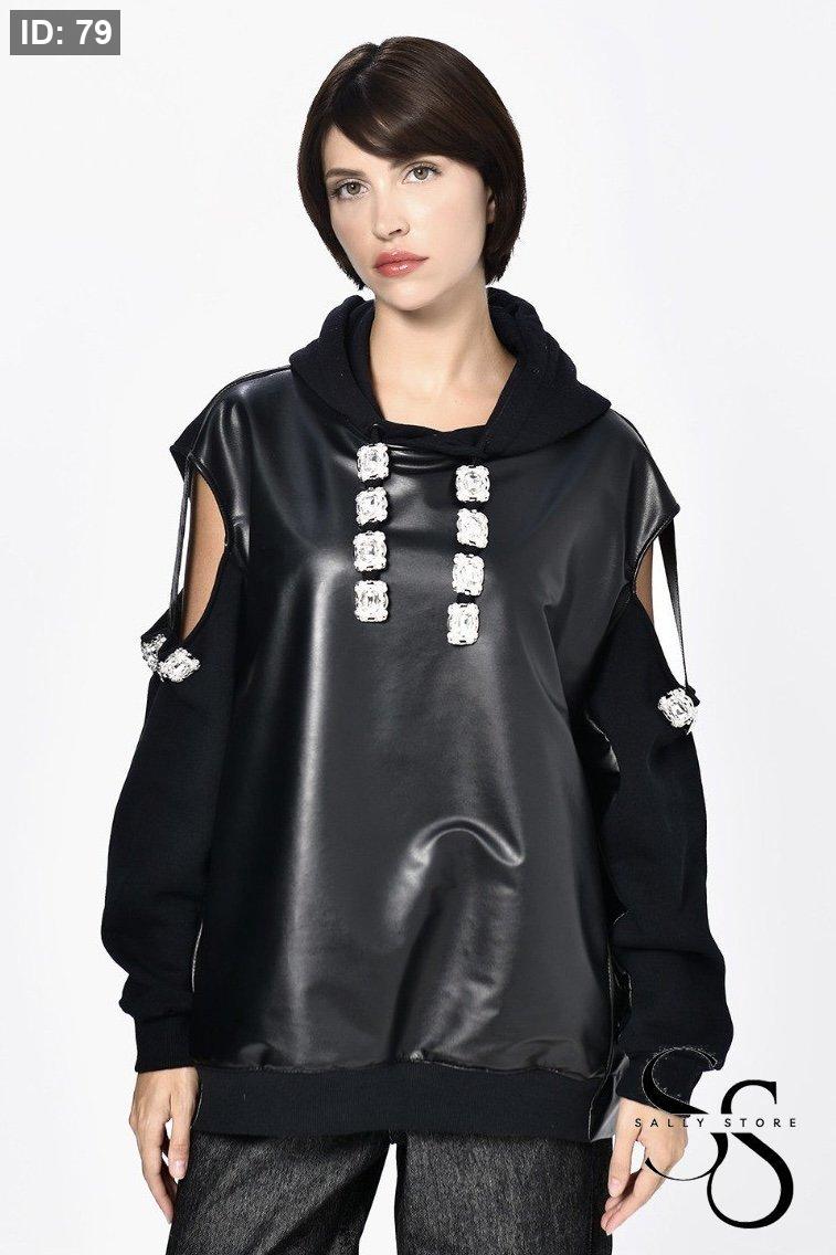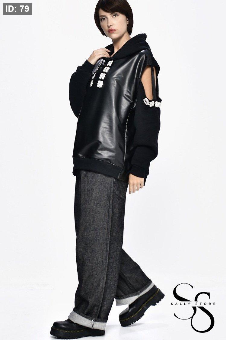 بلوزة مميّزه عليها ستراس ، من قدام جلد ، من ورا فوتر ناعم والايدين فوتر ناعم