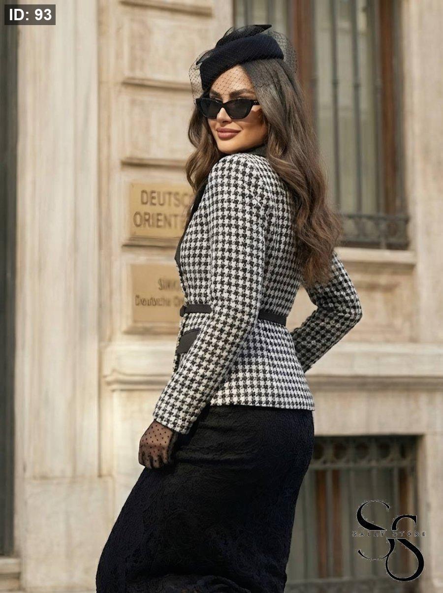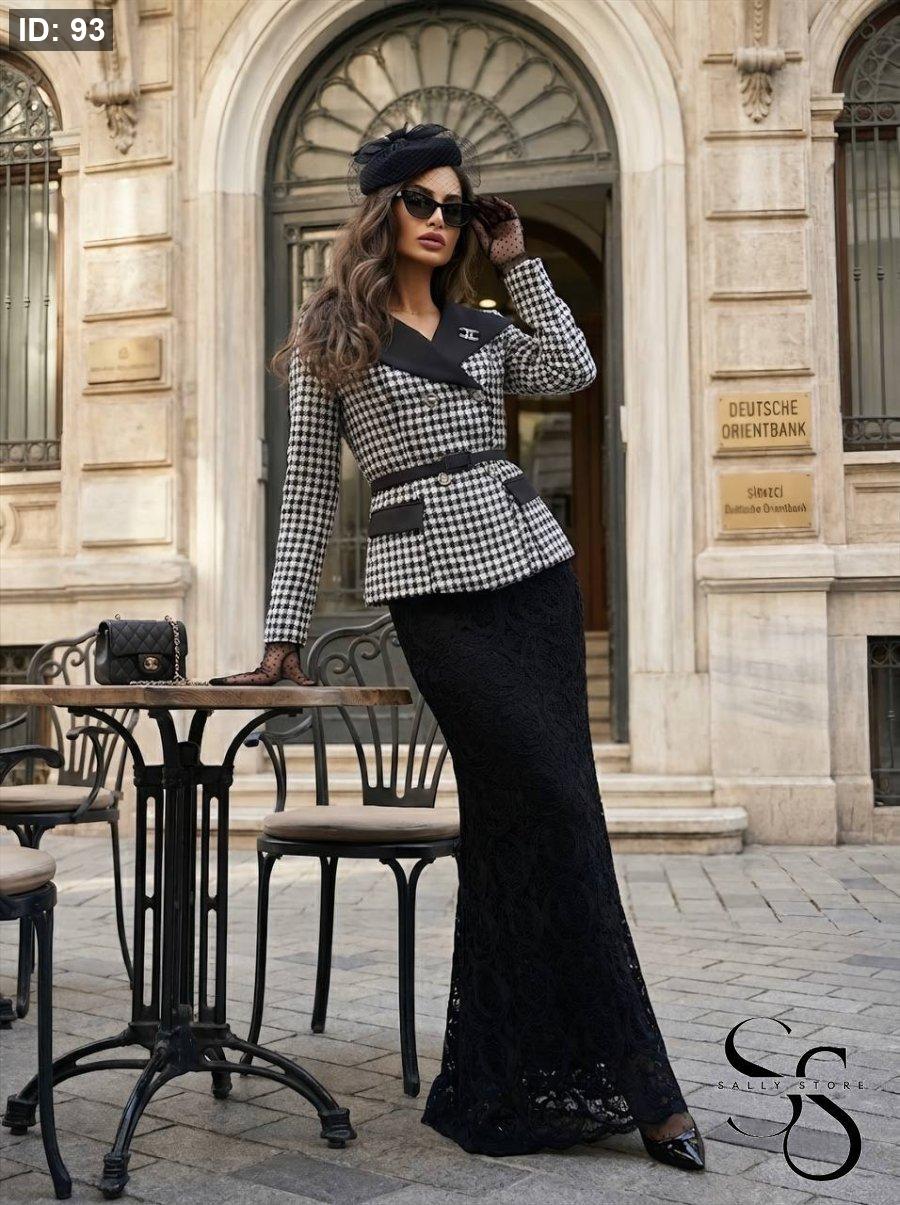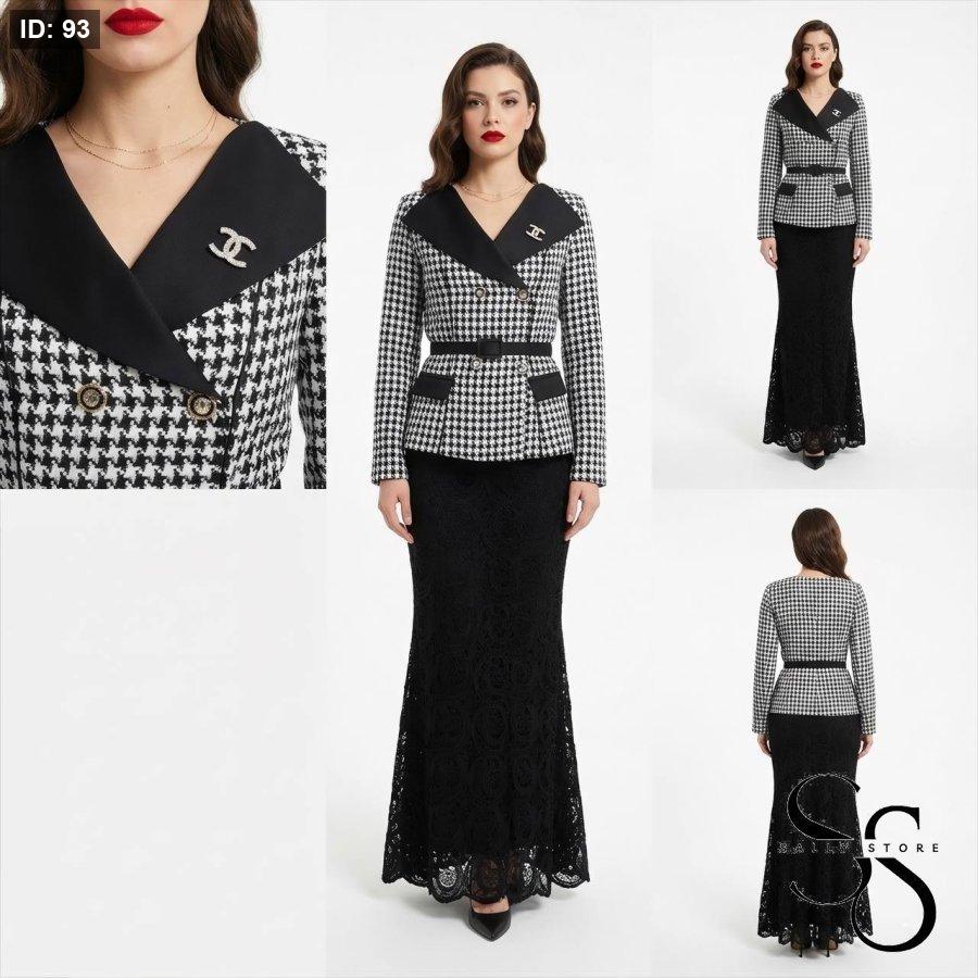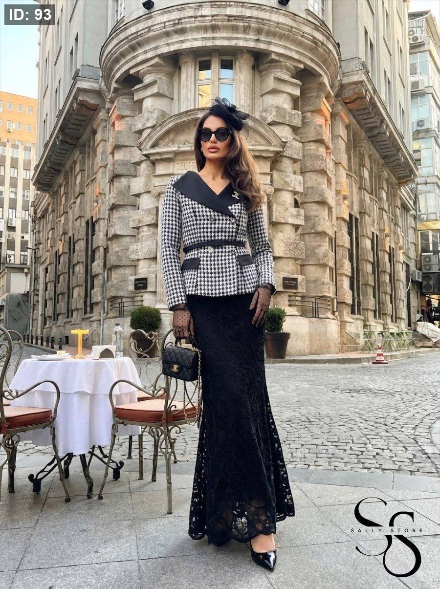 طقم تنوره دانتيل مميزه وجاكيت رسمي مع حزام