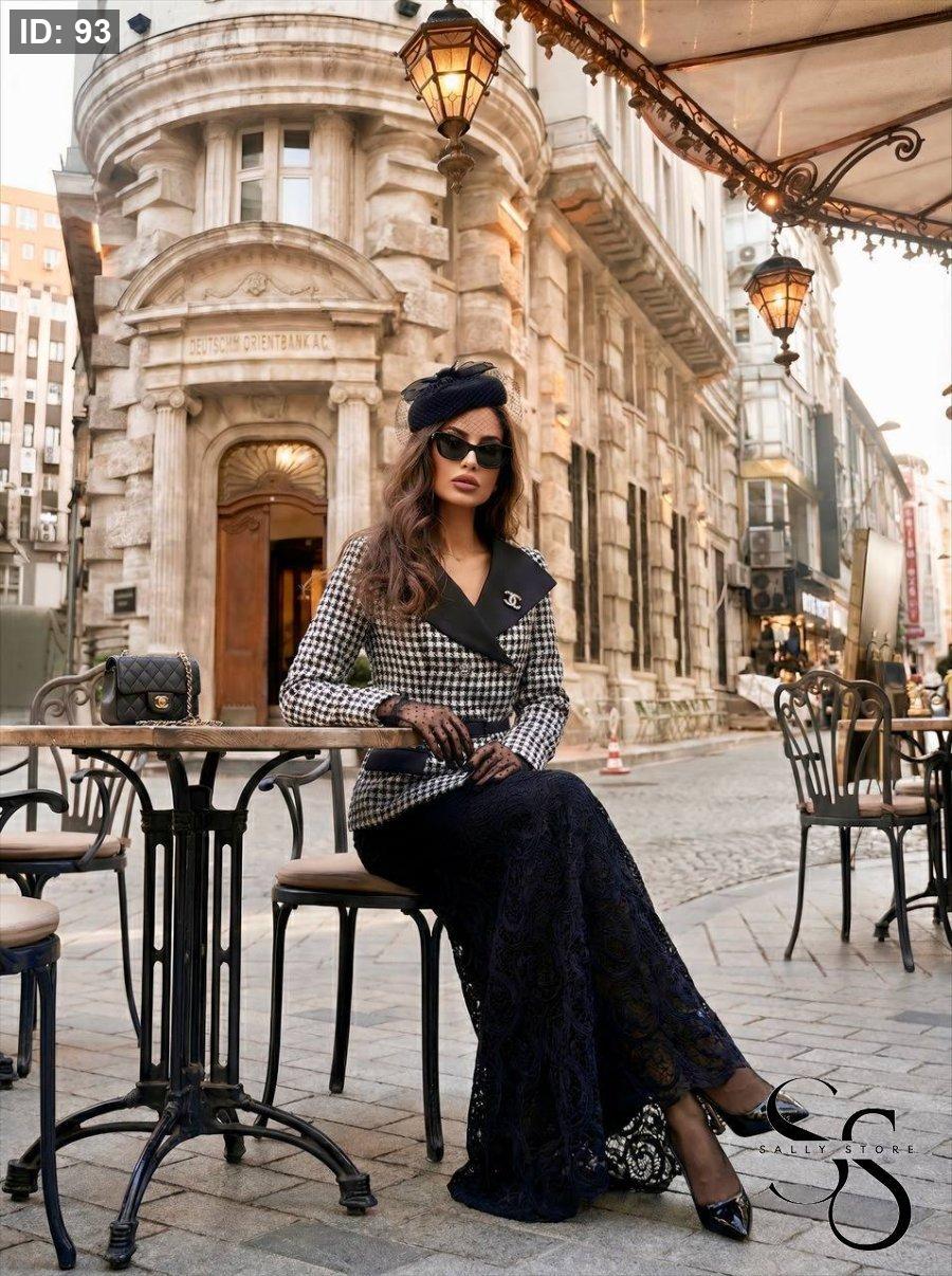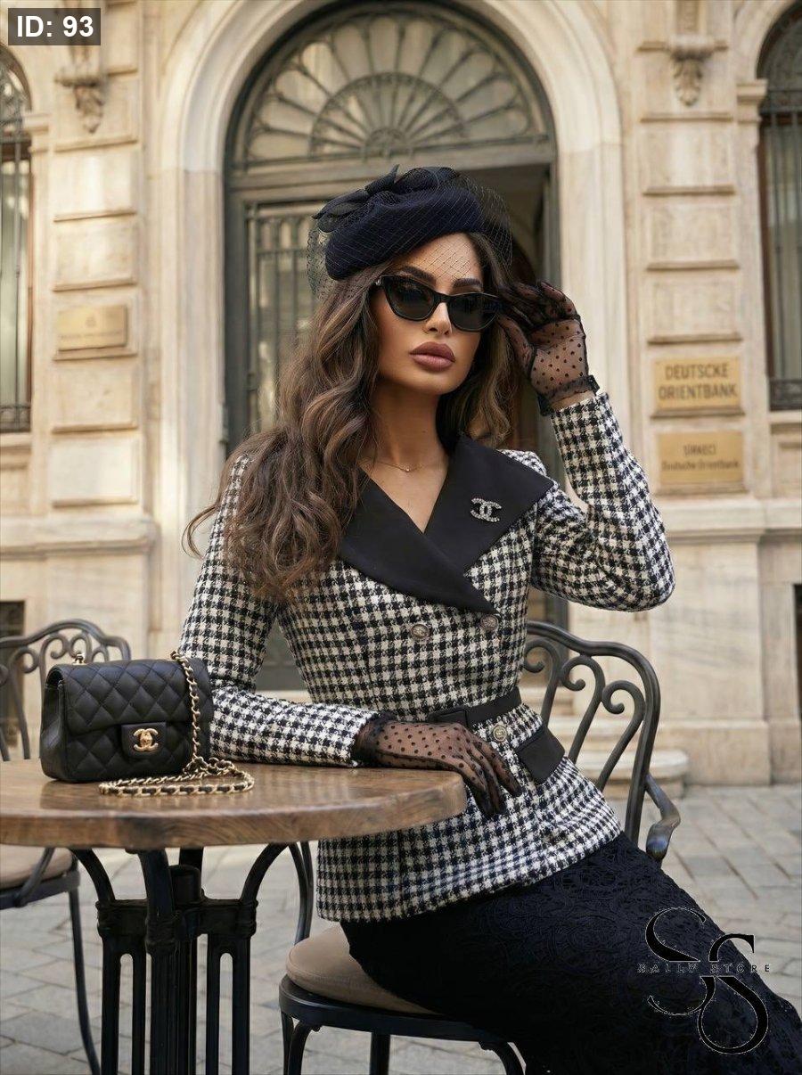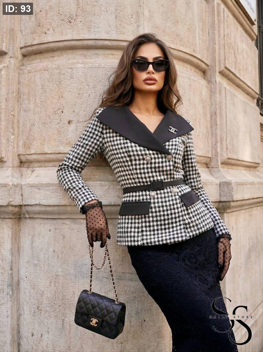 طقم تنوره دانتيل مميزه وجاكيت رسمي مع حزام